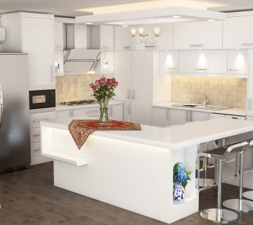 طراحی کابینت مدرن به رنگ سفید با جزیره